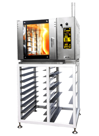 熱風のみで焼き上げる調理用コンベクションオーブンではなく、菓子・パンを焼き上げるのに必要な蓄熱性・保温性・密閉性を